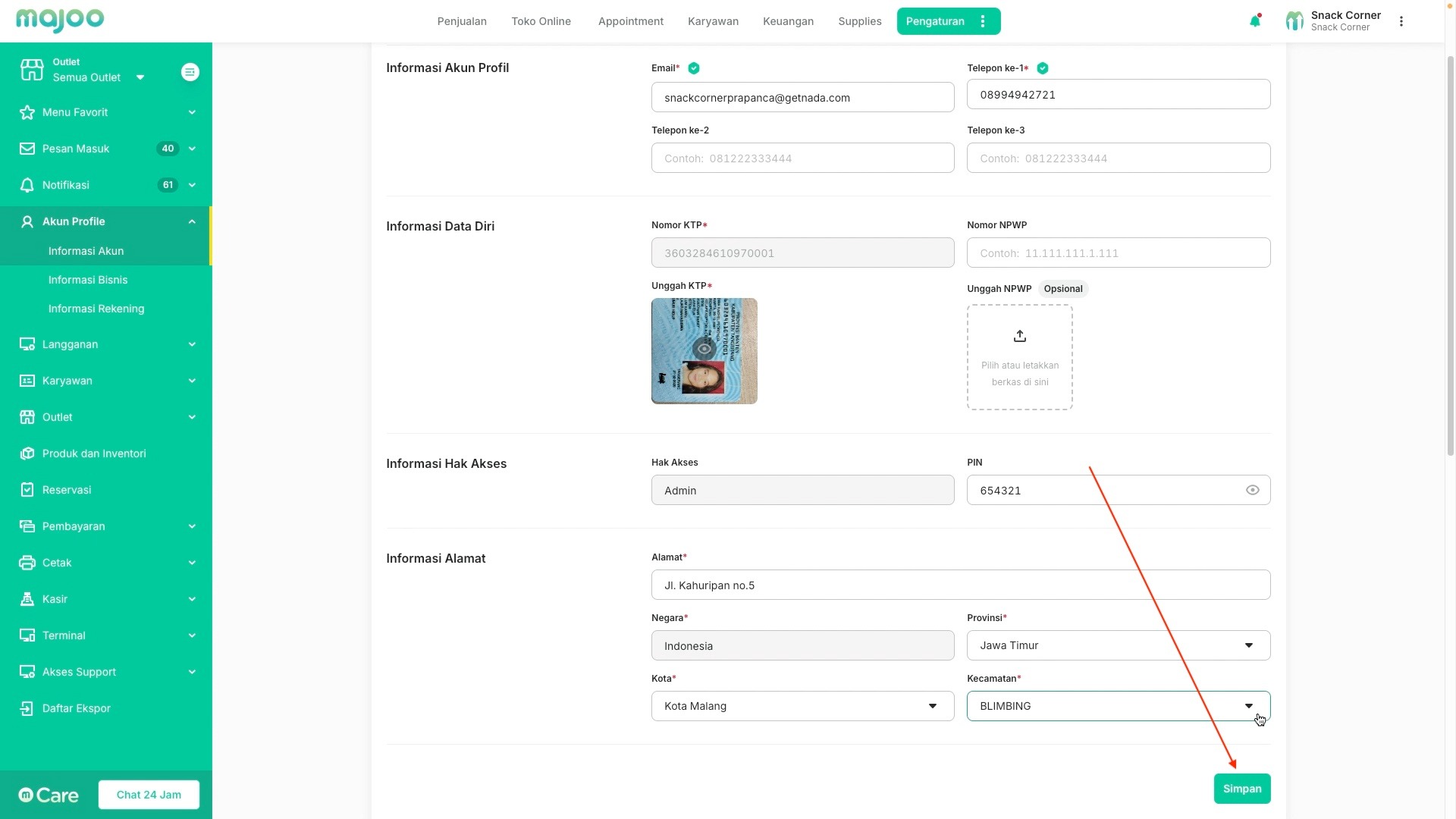 6. Pastikan semua keterangan yang di-input sudah benar, lalu klik Simpan