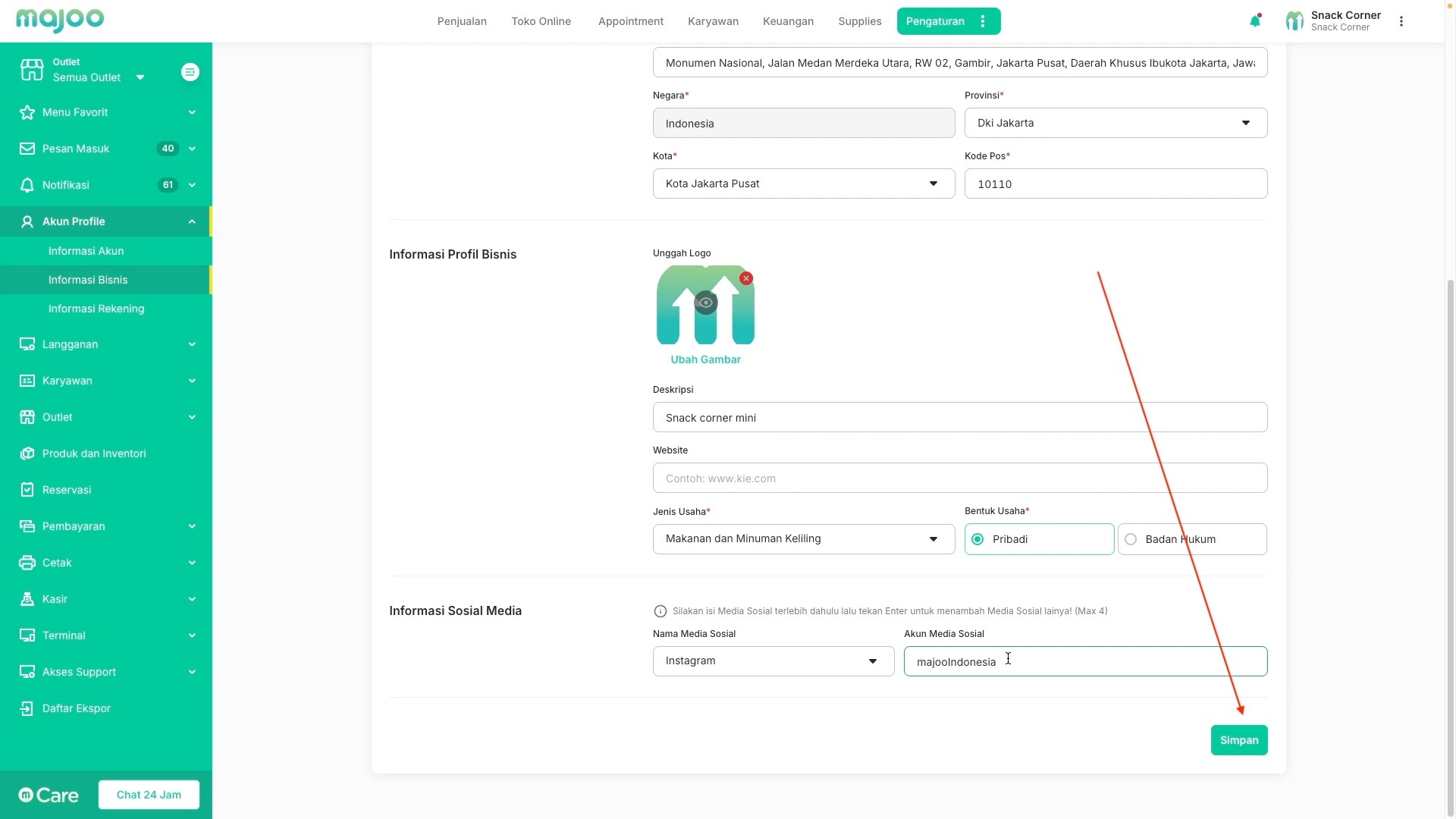 6. Pastikan semua data yang di-input sudah benar, lalu klik Simpan di sudut kanan bawah layar