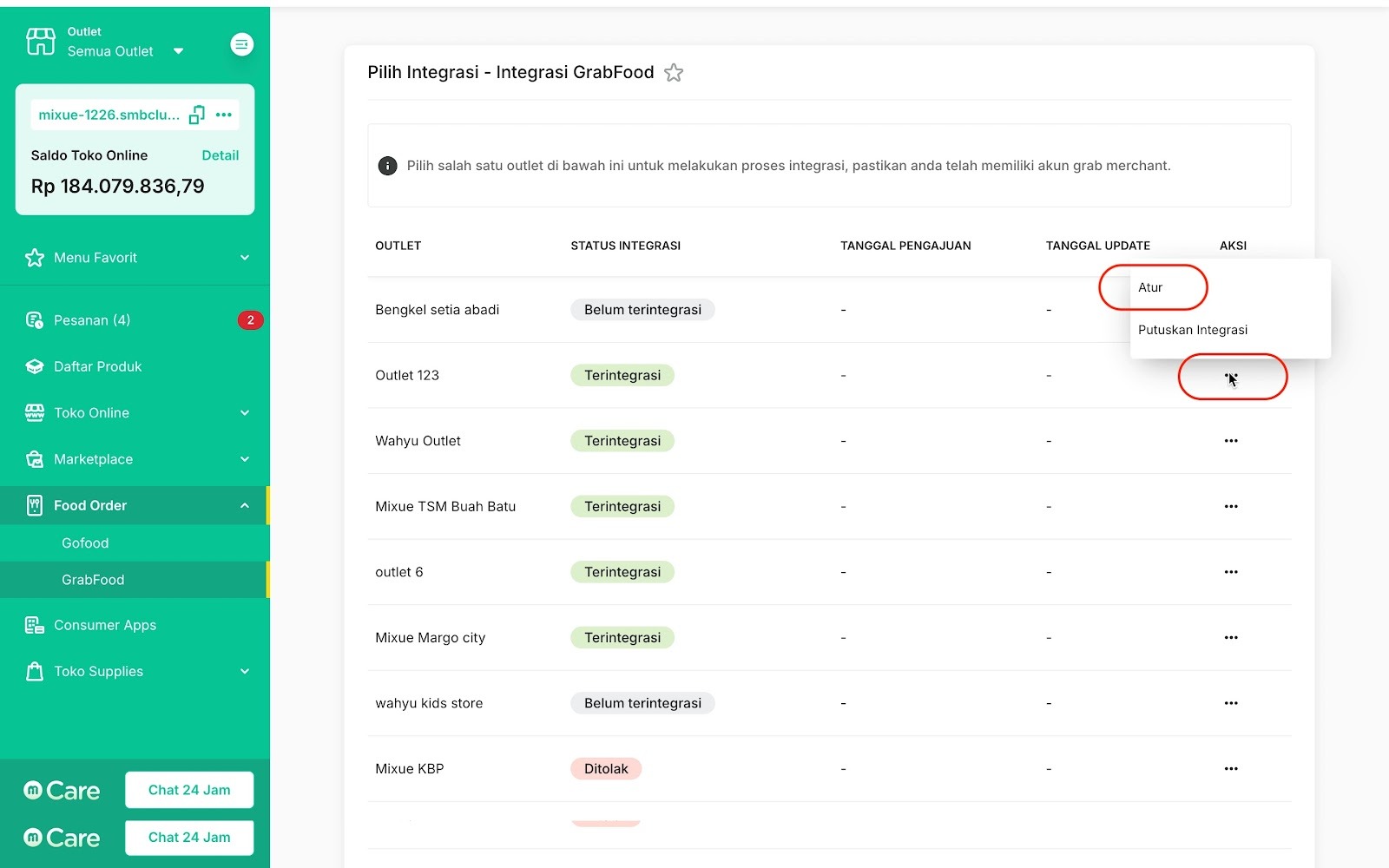 Berikut ini adalah beberapa langkah yang bisa Anda ikuti untuk melakukan pemetaan produk setelah proses aktivasi integrasi GrabFood selesai dilakukan di dashboard: